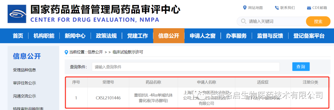 2022年01月26日,中国国家药品监督管理局药品审评中心(CDE)公示,上海必一运动官网生物医药技术有限公司一款针对中重度哮喘治疗的核心药物LQ036——重组抗IL-4Rα单域抗体雾化液(毕赤酵母)的临床试验申请(IND)正式取得批准(通知书编号:2022LP00124),从IND受理到获批仅用2个月,此间无发补项。