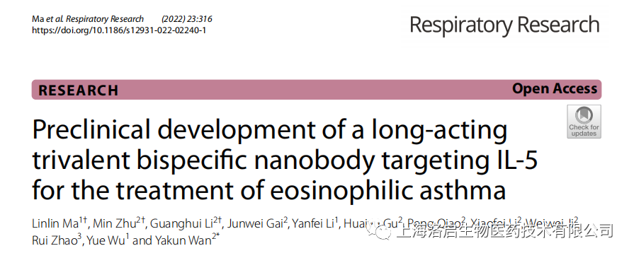 科研力量 I 必一运动官网生物长效IL-5纳米抗体研究成果于《Respiratory Research》发表!
