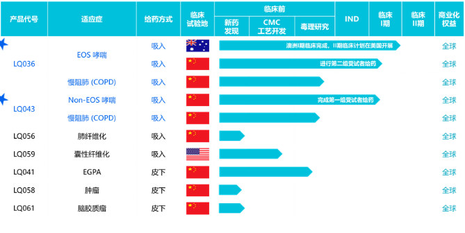 必一运动官网生物的研发管线中,还包括治疗肺纤维化的LQ056和治疗囊性纤维化的LQ059,同样采用吸入给药。