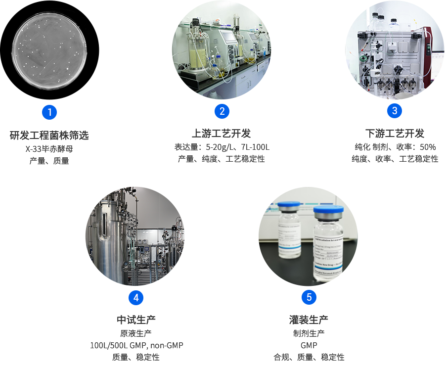 必一运动官网生物已成功建立毕赤酵母CMC平台,现在已具备多个完整项目开发经验。毕赤酵母CMC平台90%以上的项目产量在1g/L以上,纯化平台工艺,其整体回收率在50%以上。从细胞株构建到蛋白纯化仅需3-4个月,极大地缩短了项目开发时间。